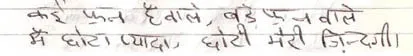 Aankh mein bas chidi ki aankh Tarkash mein himmat ke baan Pagla kar hum manzil manzil Ik tak ho kar dooben jayen Aao khud ko thakayen Kuchh kar dikhayen